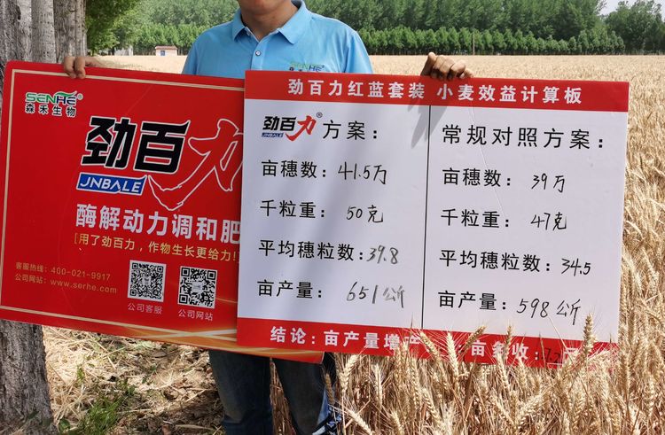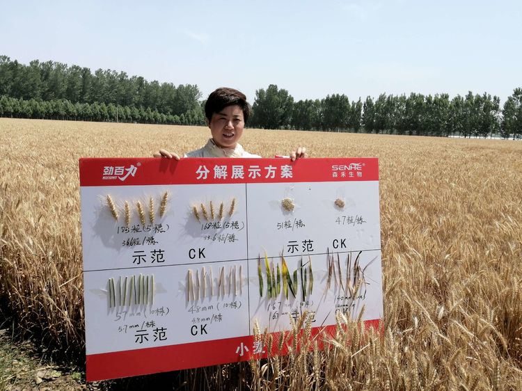 示范區(qū)則是采用了山東森禾生物有限公司的勁百力紅藍(lán)套裝搭配殺蟲(chóng)殺菌劑套裝。